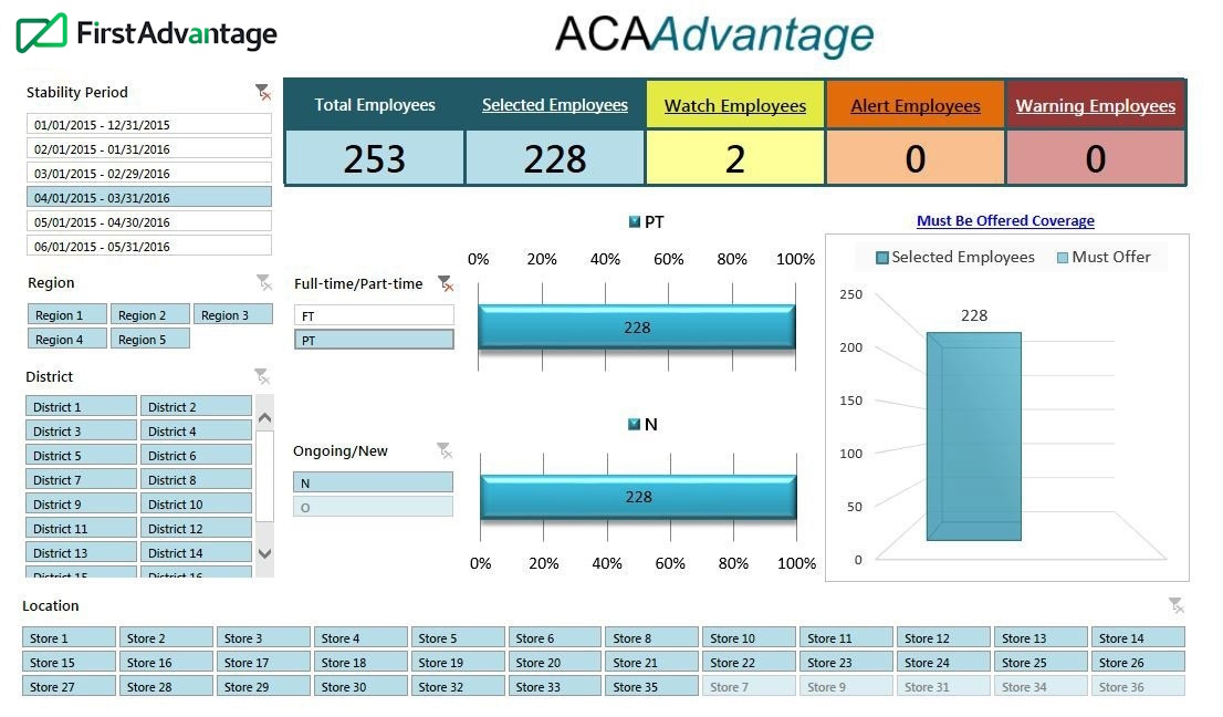 With ACA Advantage you don't need to pay employees for the arduous tasks of creating and populating manual spreadsheets, aggregating, analyzing and manipulating masses of data and preparing ACA calculations. This solution automates the process for you.